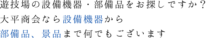 遊技場の設備機器・備品をお探しですか? 大平商会なら設備機器から 備品、景品まで何でもございます