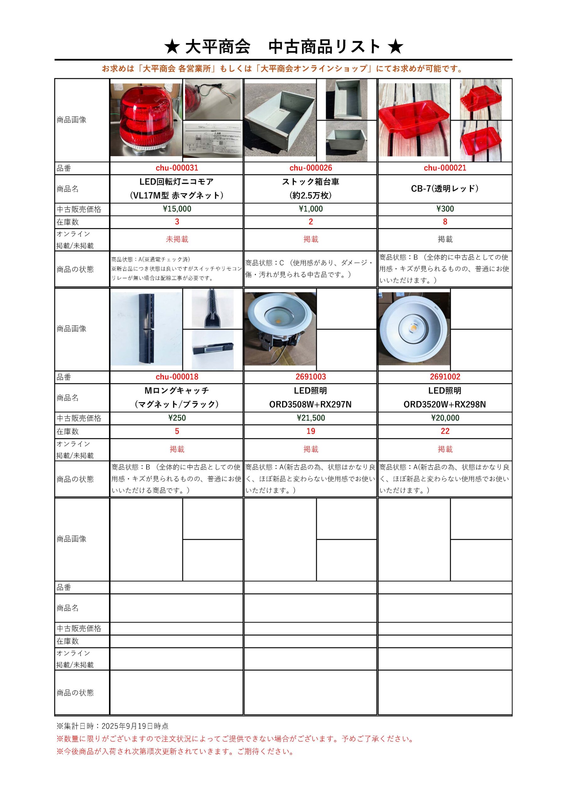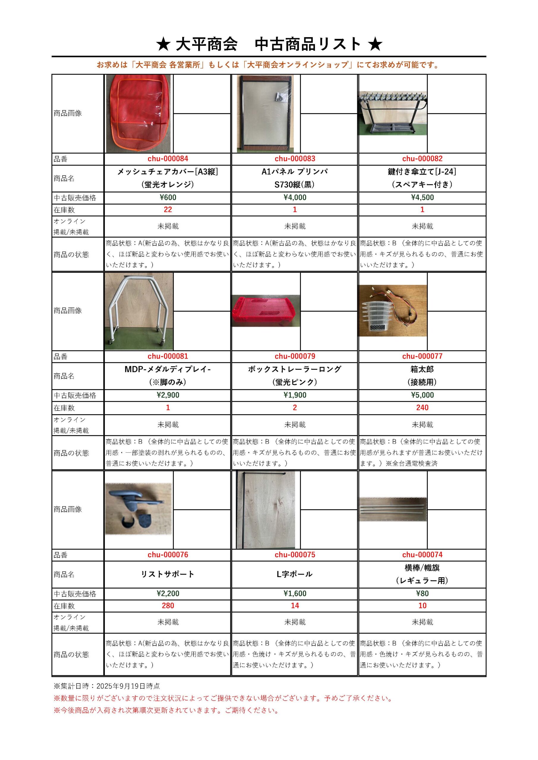 <新入荷アリ>現在販売中の「中古品/新古品」リストを更新しました。