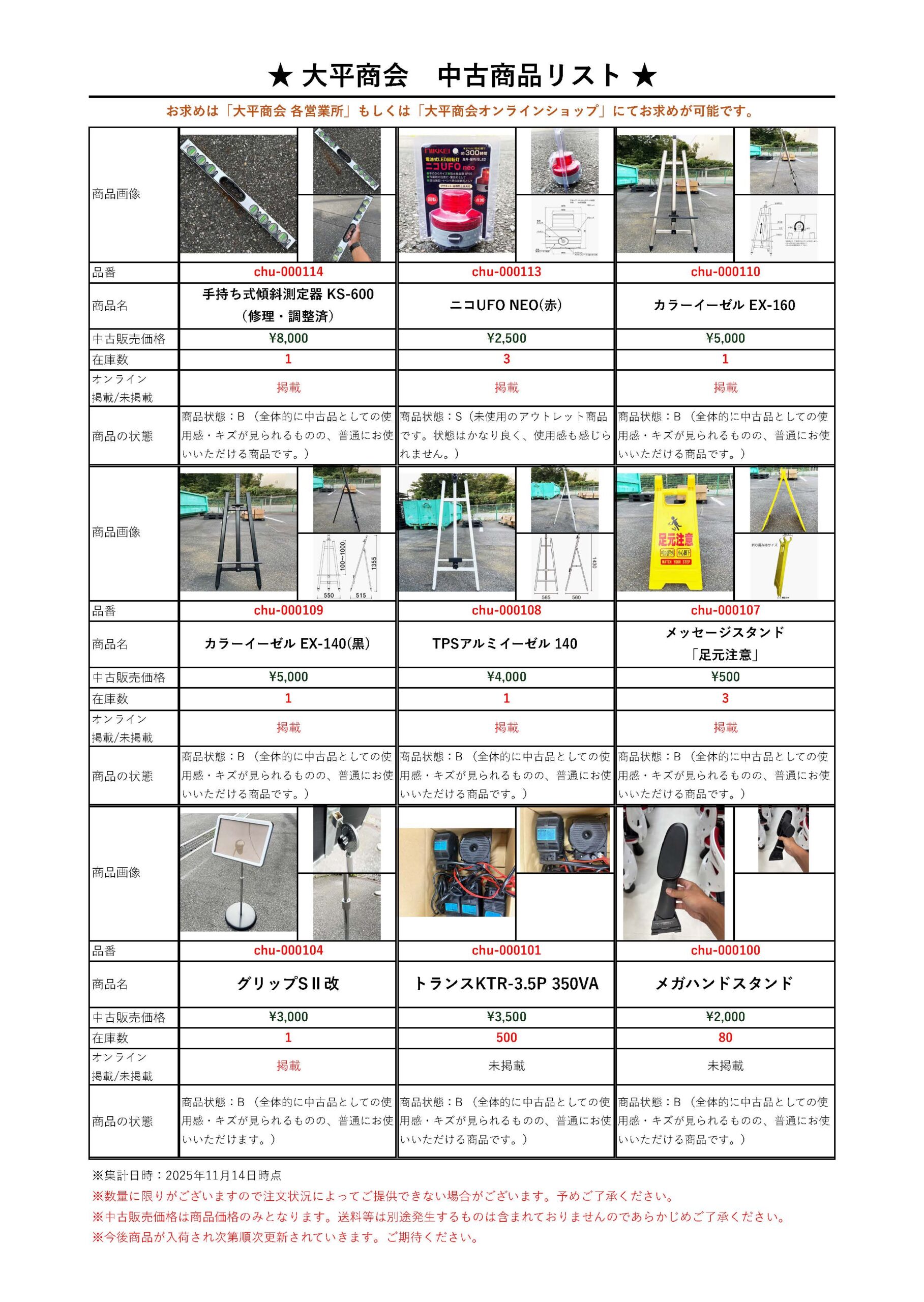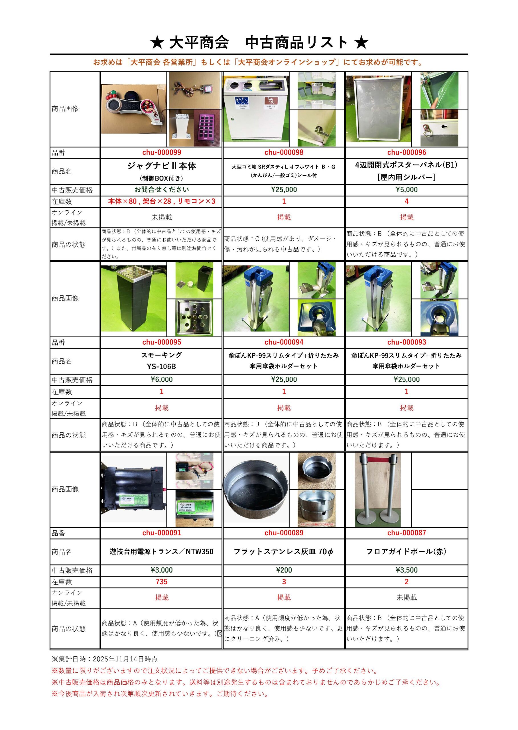 <情報更新>現在販売中の「中古品/新古品」リストを更新しました。
