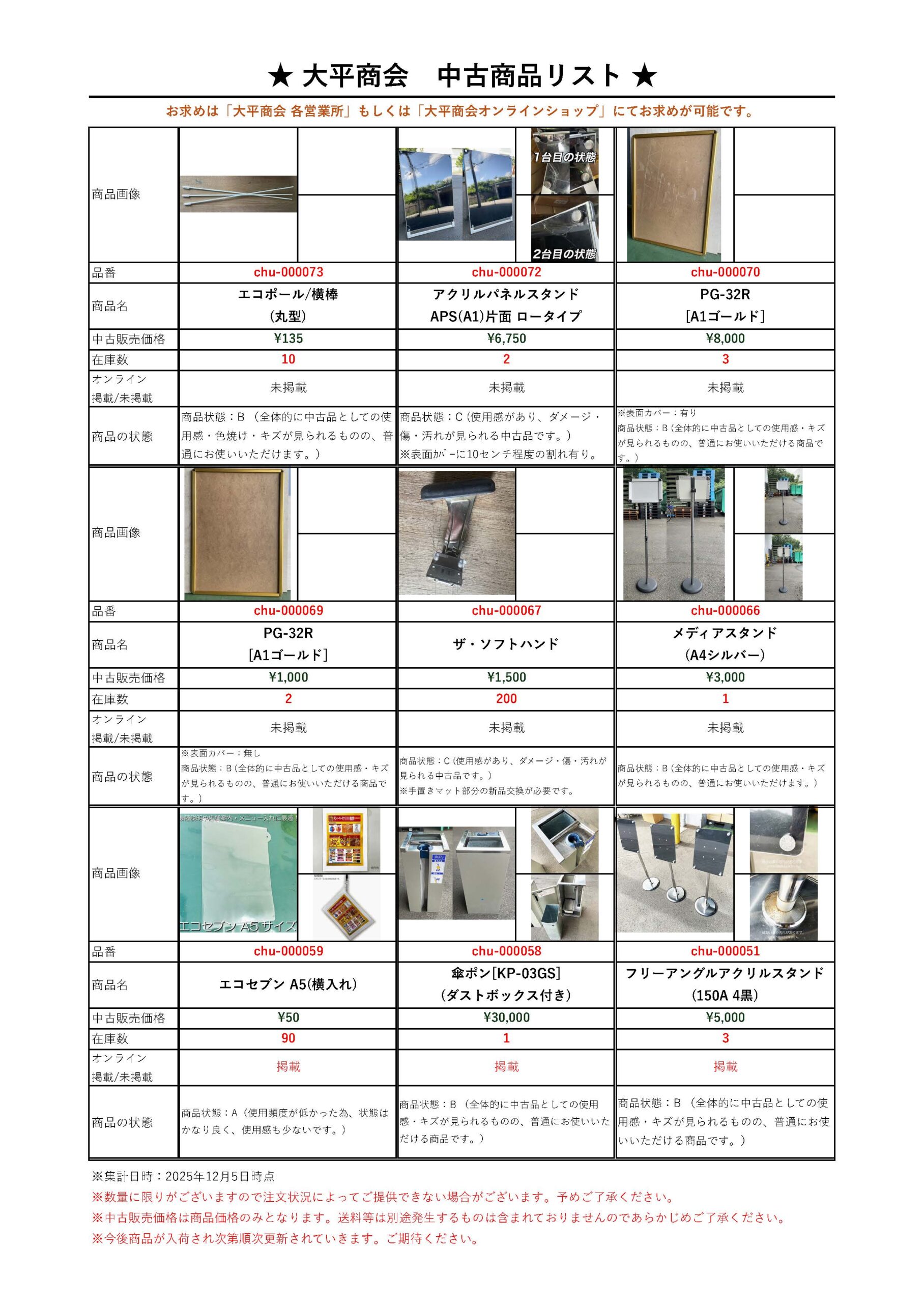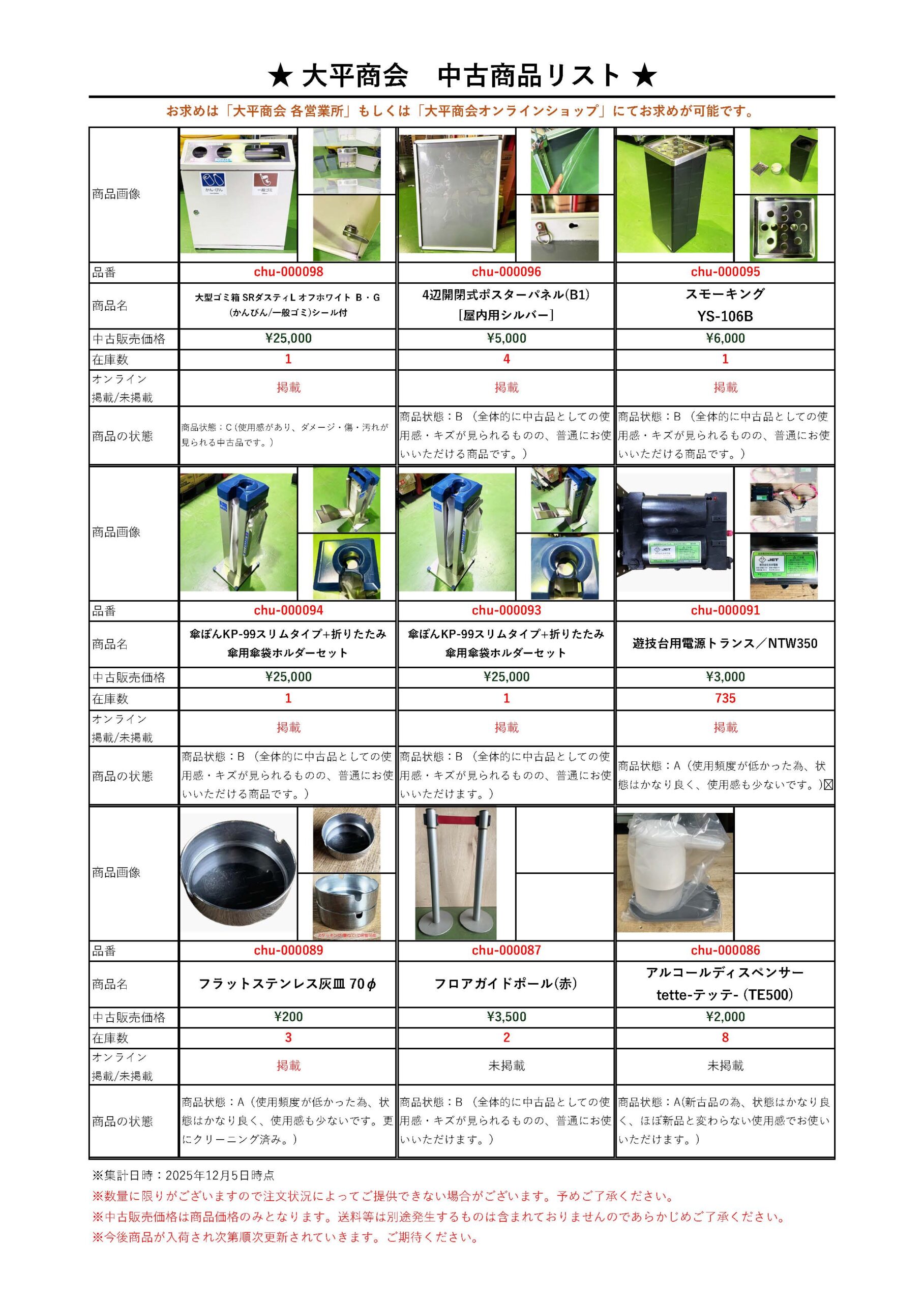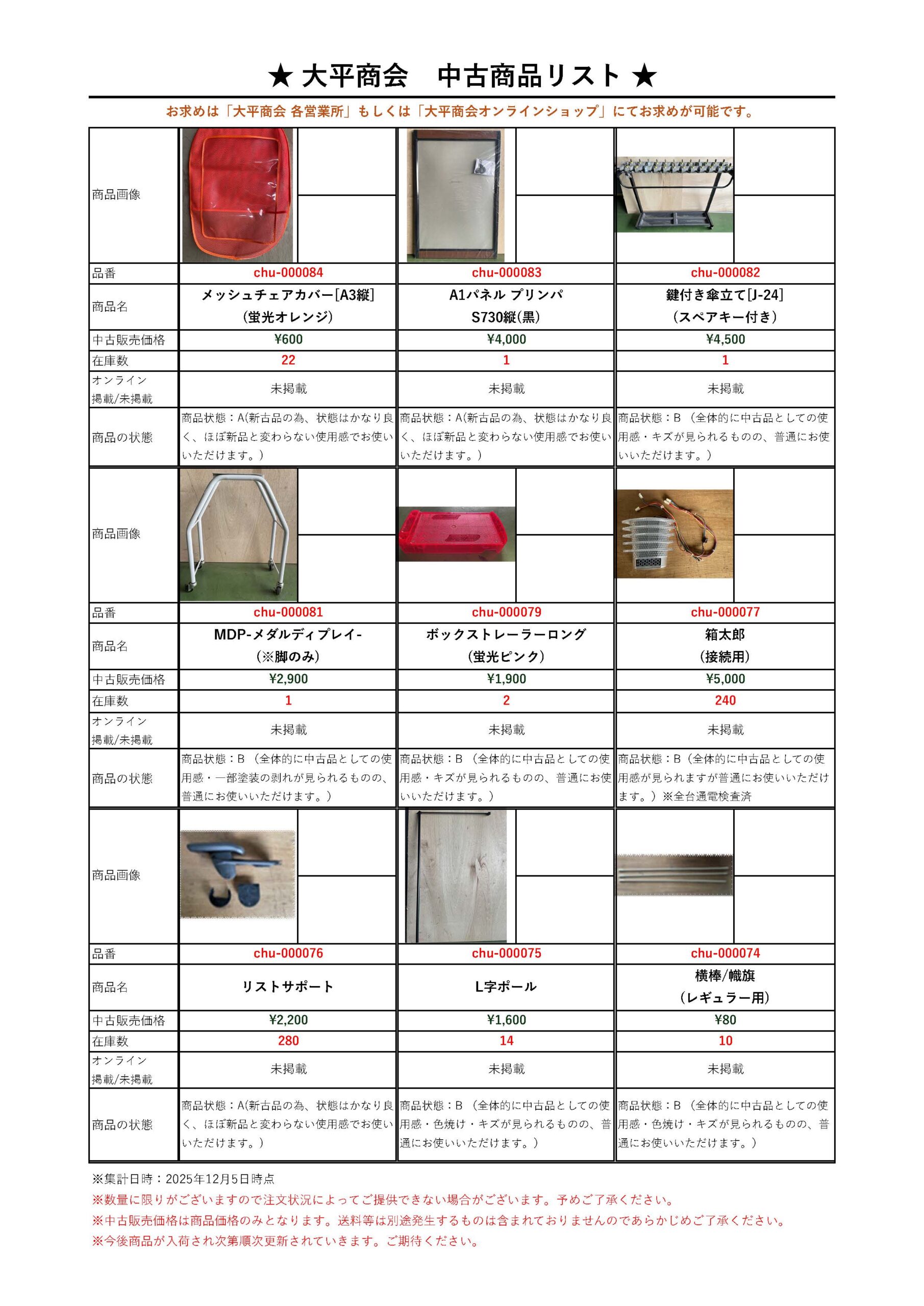 <情報更新>現在販売中の「中古品/新古品」リストを更新しました。